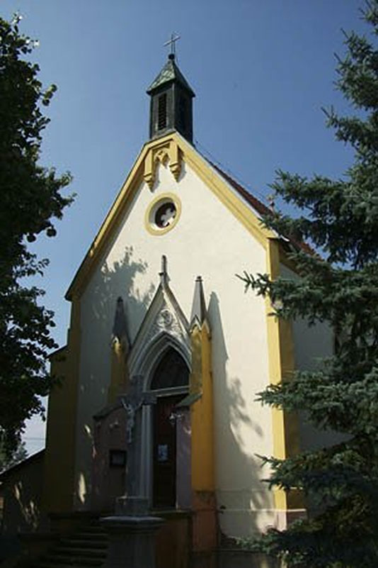 A neogótikus templomot 1858-ban építették, s eredetileg kriptakápolnának szánták. Kriptájában a Szent-Ivány, Szügyi és Simonyi család tagjai vannak eltemetve. A kis kegyhely egyhajós, nem keletelt. Szentélye a nyolcszög három oldalával záródó, a hajó és a szentély sarkain, a bejárat két oldalán támpillérek helyezkednek el. A kapu pálcatagos kerettel készült, ablakai csúcsívesek. Főhomlokzatát neogótikus konzolokra helyezett huszártorony zárja le. A sekrestye a hajó déli falához csatlakozik. A hajó egy botszakaszból áll, mind a hajót, mind a szentélyt csillagboltozat fedi. Egyszerű fa karzatát két falpillér tartja. A templom alatt kripta található. A szentély külső falán emléktáblák vannak elhelyezve.